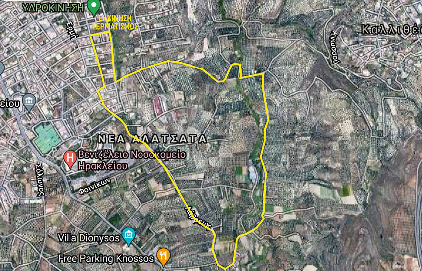οδός Σαμαράκη- Γαζίου (γραφεία Πολιτιστικού Συλλόγου)-αριστερά οδός Πολύμνιας- οδός Ελάτειας-αριστερά οδός Αρμονίας –αριστερά οδός Σαμαράκη-Τερματισμός οδός Γαζίου.